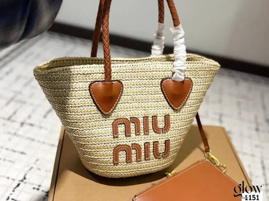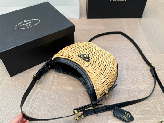 YSL - Sac porté épaule en raphia à finitions en cuir Manon Mini